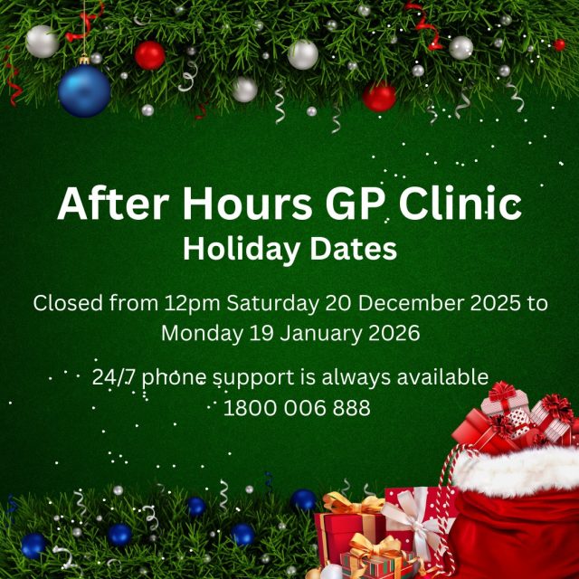 The last after hours GP Clinic session will be held on Monday 15 December 2025 and will re-open on Monday 19 January 2026 at our new home of Health on Kensington, 252 Kensington Road, Leabrook.