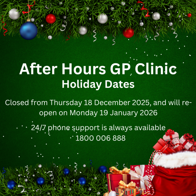 The last after hours GP Clinic session will be held on Monday 15 December 2025. The office will close from Thursday 18 December 2025 and will re-open on Monday 19 January 2026 at our new home of Health on Kensington, 252 Kensington Road, Leabrook.